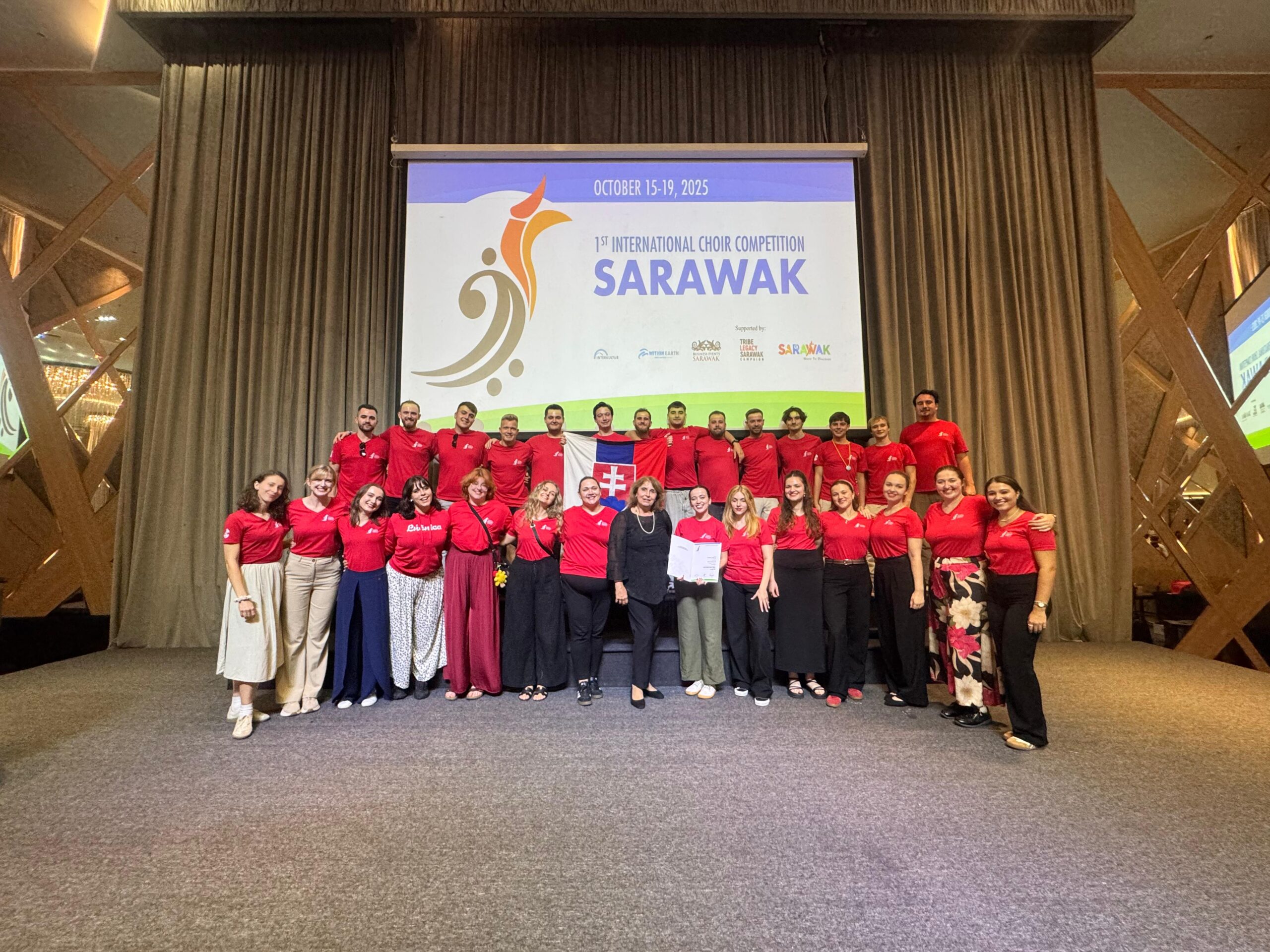 Spevácky zbor Lúčnica pod vedením umeleckej vedúcej a dirigentky Eleny Matušovej slávi ďalší úspech! Na 1. medzinárodnej súťaži speváckych zborov Sarawak 2025 v meste Kuching v ďalekej Malajzii si v dvoch súťažných kategóriách – miešané zbory a folklór vyspieval zlaté pásmo! Lúčničiari, ako jediný spevácky zbor z Európy, súťažili v silnej konkurencii 17 ázijských speváckych zborov z Indonézie, Malajzie, Južnej Kórey a Filipín, pričom medzinárodná porota vyzdvihla predovšetkým krištáľovo čistý zvuk nášho popredného telesa, vokálnu techniku a prácu s dynamickými nuansami dramaturgicky rôznorodých skladieb. Krása slovenských krojov, v ktorých chlapci a dievčatá z Lúčnice vystupovali, ešte viac umocňovali celkovú atmosféru vystúpení.